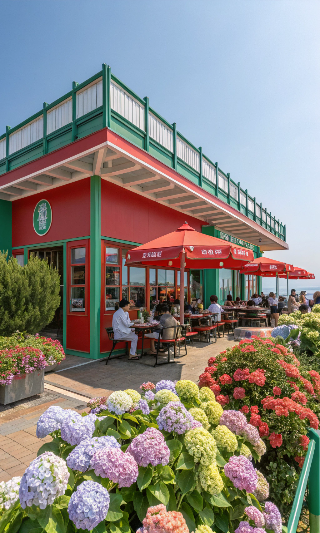 특히 흰색 나무 의자 앞에 펼쳐지는 수국 계단과, 연못 옆 유리온실 배경의 수국길은 SNS에서 인기 많은 장소입니다.