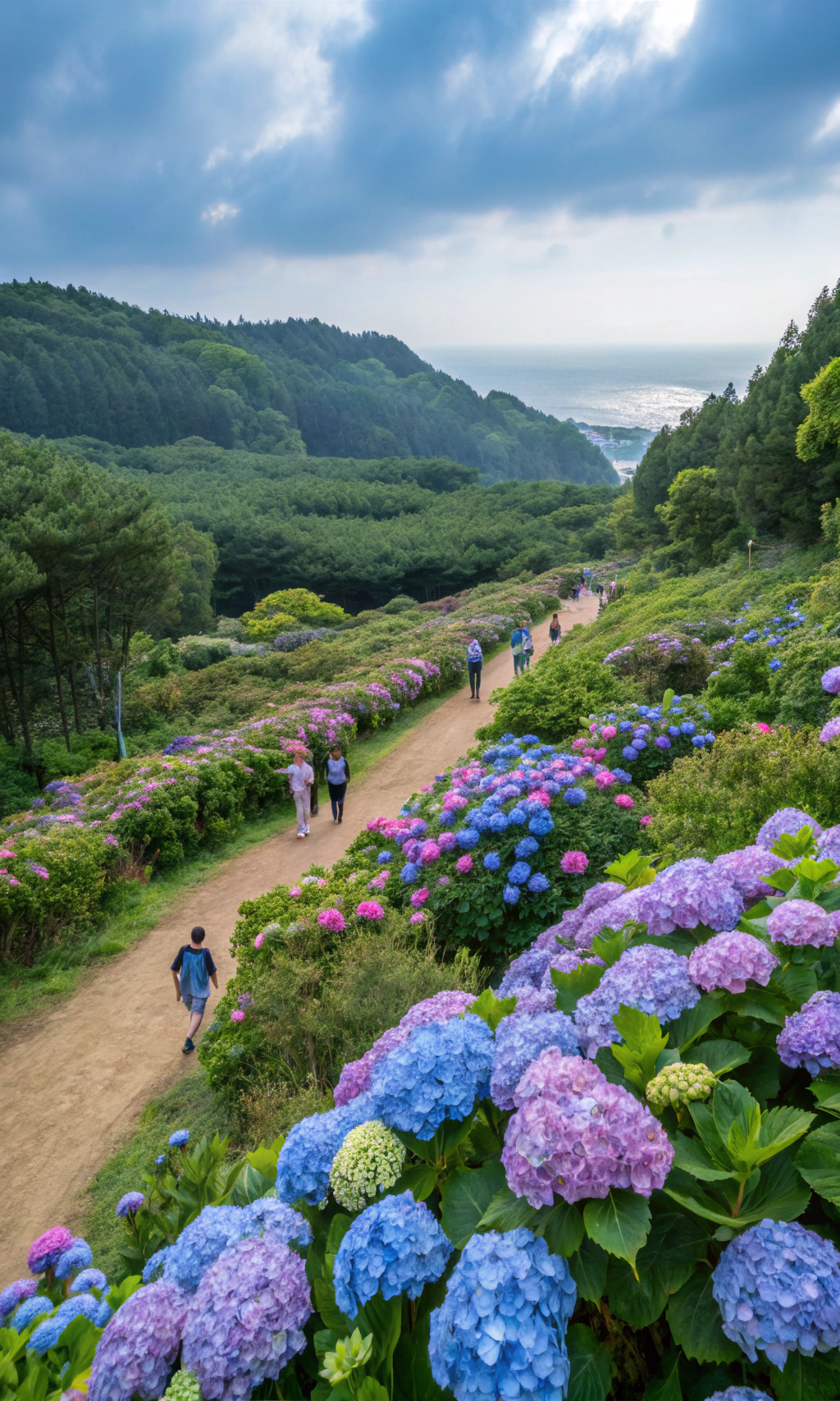 입구부터 시작되는 수국길은 보는 순간 감탄이 절로 나올 만큼 아름답고, 커플과 가족 단위 방문객에게 매우 인기 있는 코스입니다.